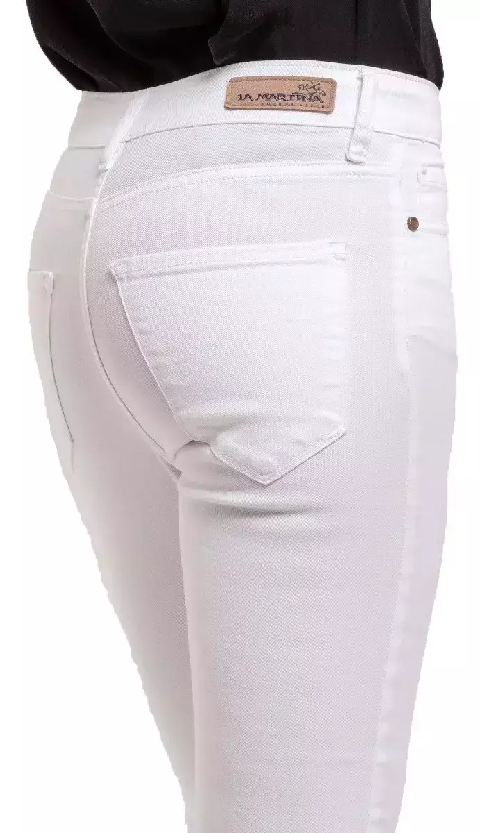 Es un pantalón diseñado para quienes buscan estilo y comodidad en una sola prenda. Confeccionado en gabardina blanca elastizada, ofrece un ajuste perfecto gracias a su elasticidad, que se adapta a tus movimientos sin perder la forma.